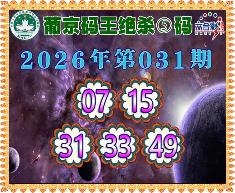 031期: ♦️『葡京码王』 ♦️绝杀⑤码♦️【07.15.31.33.49】开:龙26准